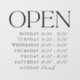 Customise all of the colours and text below "OPEN". "OPEN" graphic can be scaled or edited in colour, or deleted to add your own text. Transparent or opaque available.