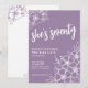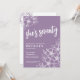 Elegant Seventy Purple 70th Birthday Party Invitation. A fun but elegant 70th birthday party invitation with girly purple and white flowers for the young at heart. A playful flower pattern frames a script typography "she's seventy" mixed with a more classic serif font. Celebrate seventy years of life with this beautiful botanical design. The fun part is you can change out ALL of the colours!! You can not only change the background colours and font, but you can change the lines for the flowers as well.