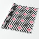 Elegant Shabby Chic Pink and Black Roses Stripes Wrapping Paper