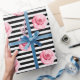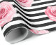 Elegant Shabby Chic Pink Roses and Stripes Wrapping Paper
