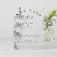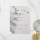 A stylish, minimalist black and white wedding or engagement invitation featuring "She Said Yes" script, elegant floral accents, and event details for Olivia and Jonny's big day (Saturday, 14th September 2024, at 2 pm).
