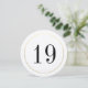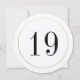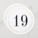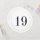 Classic black and white table number on thick shimmer paper die-cut circle with gold border. Multiple paper types, square or rounded corners also available.