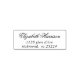 Return address stamp featuring your name in an elegant signature-like script and your address in simple modern italic typography.