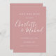 Featuring signature style names, this elegant dusty rose save the date card can be personalised with your special wedding day information in chic white lettering. Designed by Thisisnotme©