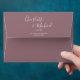 Featuring signature script names, this elegant return address envelope can be personalised with your names and address details in chic white lettering on a mauve background. You can customise the background to your favourite wedding theme colour. Designed by Thisisnotme©