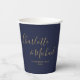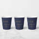 Elegant Signature Script Navy Blue Gold Wedding Paper Cups