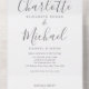All in one wedding invitation featuring elegant signature script name and monogram initals. The invitation includes a perforated RSVP card that’s can be individually addressed or left blank for you to handwrite your guest's address details. Designed by Thisisnotme©
