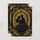 Elegant silhouette of a bride and groom surrounded by ornate swirls and embellishments. The design is done in a luxurious combination of gold and black, which exudes elegance and sophistication. The intricate details give the invitation a romantic and classy touch,