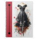 Notebook cover featuring vintage little black dress illustration, Victorian elegance meets sultry chic design, ideal for fashion sketching, stylish journaling, black dress art, retro inspiration, creative writing. High‑quality pages, durable binding, perfect size for note‑taking or sketchbook use.