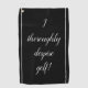 This elegant golf towel design features the silly message, "I thoroughly despise golf!" on a black background. It could be a fun gift for somebody who really does not like to play golf.