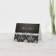 Elegant Silver and Black Damask with Diamond Heart Thank You Card