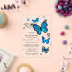 Create your own stunning blue butterfly invitations on clear acrylic cards! This editable DIY template works beautifully for a royal blue quinceanera, fairy tale princess sweet 16 birthday party, once upon a time wedding, Cinderella bridal shower, baby shower, and other magical celebrations. Featuring cool original watercolor art by Raphaela Wilson, each pretty blue monarch butterfly boasts an elegant soft floral rose patterns on its wings, adding a touch of unique beauty to your invitation. Personalise the calligraphy script and chic modern fonts to make it truly your own, or edit the whimsical fairytale design further to alter the typography to something that best suits your fancy. Feel free to also reposition the blue butterflies, glitter diamond sparkles, or uncover a rustic stone-like texture for the background. Enjoy! Category: blue butterfly acrylic invitations quince; DIY acrylic quinceanera invitations with butterflies; and elegant acrylic quinceanera invitations. Royal blue butterfly quince theme colours: royal blue, turquoise, sapphire, dark blue, navy, black, dark grey, light grey, vintage faux metallic silver, black and white.