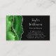 This elegant and glamourous business card features a dark green agate marble background with faux silver glitter accents. The text combines handwritten script and modern sans serif fonts for a classy and sophisticated look. The sequins and glitter texture creates the perfect blend of chic and grunge.