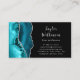 This elegant and glamourous business card features a teal blue agate marble background with faux silver glitter accents. The text combines handwritten script and modern sans serif fonts for a classy and sophisticated look. The sequins and glitter texture creates the perfect blend of chic and grunge.