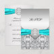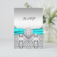 Pretty diamond, silver and teal blue wedding RSVP.