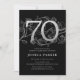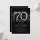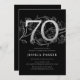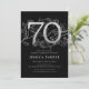 Elegant silver black 70th birthday party invitation. Customisable modern feminine design featuring roses botanical accents and faux glitter silver. Simple floral invite card perfect for a stylish female bday celebration. Personalise with your own details. Printed Zazzle invitations or instant download digital printable template.
