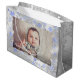 Beautiful Christmas design in faux silver and blue. Personalise with your own photo and your family name.