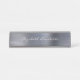 This elegant modern name plate features a background image of silver faux brushed metal foil. Personalise it with your name in white handwriting-style script.