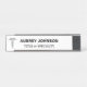 Elegant silver caduceus on white name plate. Ideal for medical doctors and health care staff.