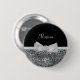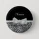 An elegant silver grey cheetah print button with a frilly sheer white bow embellished with pretty pearls and a rosette ribbon in the centre. Any girly girl who loves silver and black would love to have her name added to this chic and stylish animal print name tag design. Flat printed image, not actual ribbon.