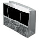 An elegant silver grey cheetah print gift bag with a frilly sheer white bow embellished with pretty pearls and a rosette ribbon in the centre. Any girly girl who loves silver and black would love to have her name added to this chic and stylish animal print design. Flat printed image, not actual ribbon.