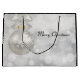 A large gift bag with a magical holiday design. Featuring a silver Christmas ball with snowflake decorations and finished off with a pretty silver bow. The background is a silver bokeh lights illustration with elegant stars scattered throughout.