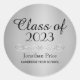 Send out your graduation announcements and graduation party invitations in style with these silver graduation stickers. They are perfect envelope seals. The begin with Class of and then the year. A silver flourish makes an elegant statement and then the graduate's name and their high school or college.