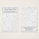 This simple, elegant card features template space holders for adding your business contact details to both the front and back. I've used a pretty script font for your designer or business name, and a clean, sans-serif typeface for all other details. The background of the card was covered in a graphic depicting faux-metallic silver confetti. A black-bordered rectangle overlays this graphic, setting off your text elements beautifully. Please don't hesitate to reach out if you need any customising help.
