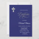 Elegant Silver Cross Baptism Navy Blue Invitation