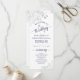 This beautiful wedding program features an elegant design with navy blue text on a white background and lacy silver grey faux foil curls and swirls in the corners. The titles are written in fancy script calligraphy, and there is space for your ceremony and wedding party details, as well as a short thank you for your guests. Wonderful way to welcome your friends and family to your wedding celebration.