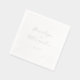 These wedding napkins feature a minimalist and elegant design with ample negative space, creating a clean and sophisticated look. The names are written in an elegant cursive script, connected by the word "AND," while the date is presented in a small, understated serif font. The soft grey tones of the text contrast subtly against the light background, enhancing the delicate and refined appearance. Perfect for adding a touch of personalisation to your special day, these napkins embody a classic and timeless style, ideal for weddings or formal events.