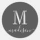 Elegant Silver Custom Monogram M Name Classic Round Sticker