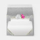 Elegant envelope in a Beautiful pearl white and silver damask setting with draped pearls and 3 roses, one white rose, 2 pink roses - Very elegant - NOTE: There are no real roses, silver, diamonds, gemstones,pearls, precious metal, or gold on this paper product. These are artistically designed to appear real by the artist.