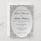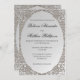 A very elegant, sophisticated custom wedding invitation with a silver theme. The decorative silver frame on the front is repeated on the back, with custom monograms of the bride and groom. All details can of course be personalised to suit.