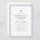 Elegant black and white minimalist rehearsal dinner invitations with faux silver floral and dusty blue borders, simple and stylish. Great for modern classic wedding, and formal wedding.