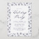 Elegant holiday party invitation with a border of silver foil snowflakes and pine branches on a white background. "Holiday Party" is displayed in a silver foil calligraphy script with your party details shown below. The snowflake holiday party invitation reverses to display a beautiful snowflake pattern.