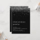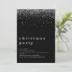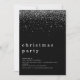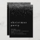 Elegant Silver Glitter Confetti Christmas Party Black. The header is large in stylish lowercase with the details beneath. Lots of white space for a contemporary feel and a border of confetti style silver glitter at the top on both sides. Easily personalise the text to your own details.
