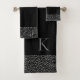 Elegant Silver Glitter Feathers on Black Monogram Bath Towel Set