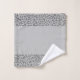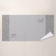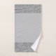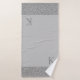 On this sleek bath towel set is a grey backdrop for contrast with little glittery silver feathers as a border. Elegant minimal modern. Can be personalised with a letter on the big towel.