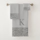Elegant Silver Glitter Feathers on Grey Monogram Bath Towel Set