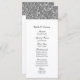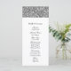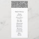 This card allows you to describe your wedding party on one side, and your wedding ceremony program on the other. Customise if you need to add extra lines of text. Featuring an image of silver glitter (PRINTED--no actual glitter) against a white background.