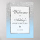 Elegant Silver glitter ombre Blue Sweet 16 Welcome Poster