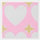 The design features and elegant unique pattern of broken hearts in silversih grey along with 4-poinit stars in a fun, minimalist pattern on cute pastel pink coloured squares.