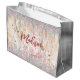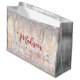 Elegant silver gold rose dripping glitter monogram gift bag. Celebrate the holidays, birthdays, valentines, Christmas, bachelorette parties, sweet 16 or Quinceaneras with beautiful girly modern glam gift bags designs on your desired gifts.