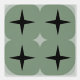 The design features an elegant, fun pattern of silver grey and black 4-point stars on a sage, greyish green coloured background. The design allows for customisation of the background colour to best fit your preferred colour palette.