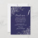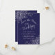 These beautiful save the date cards will let your friends and family know about your upcoming wedding. They feature an elegant navy blue design with ornate silver grey curls and swirls in the corners and fancy script calligraphy reading Save the Date with the names of the couple, wedding date and location. The back has a cute "pencil us in" graphic with space for a note that can include a website where your guests can go for more information.