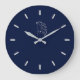 Elegant Silver Grey Horse Silhouette on Navy Blue Large Clock