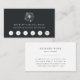 Island chic loyalty cards for any occupation or beach-based business feature a tropical hibiscus flower in faux silver foil on a rich soft black background with white lettering. Add your business name and customer loyalty offer beneath with six punchout circles, and personalize the back with your contact details.