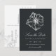 Notify guests of your upcoming destination, beach, or tropical island wedding with these beautiful summer save the date postcards featuring a faux silver foil hibiscus flower illustration on a rich soft black background. Elegant white script and block lettering displays your wedding details (names, wedding date, and location); use the reverse side to share additional details like your wedding website.