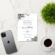 This beautiful wedding invitation features both teal and real foil silver printing on a classic white background. The beautiful design has lacy script calligraphy with floral lace filigree in the corners. Stylish, elegant, sophisticated, and chic, this invitation is fancy and glam. The perfect choice for elegance, style, and class.